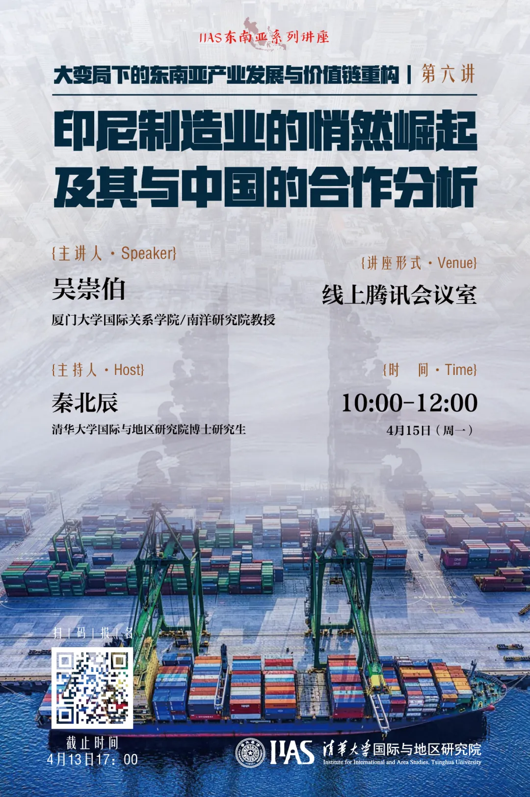 On April 15, 2024, Institute for International and Area Studies of Tsinghua University invited Professor Wu Chongbo of the School of International Relations/Nanyang Institute of Xiamen University to give the sixth online lecture in the series of lectures on "Industrial Development and Value Chain Reconstruction in Southeast Asia under Great Changes", with the theme of "The Quiet Rise of Indones...