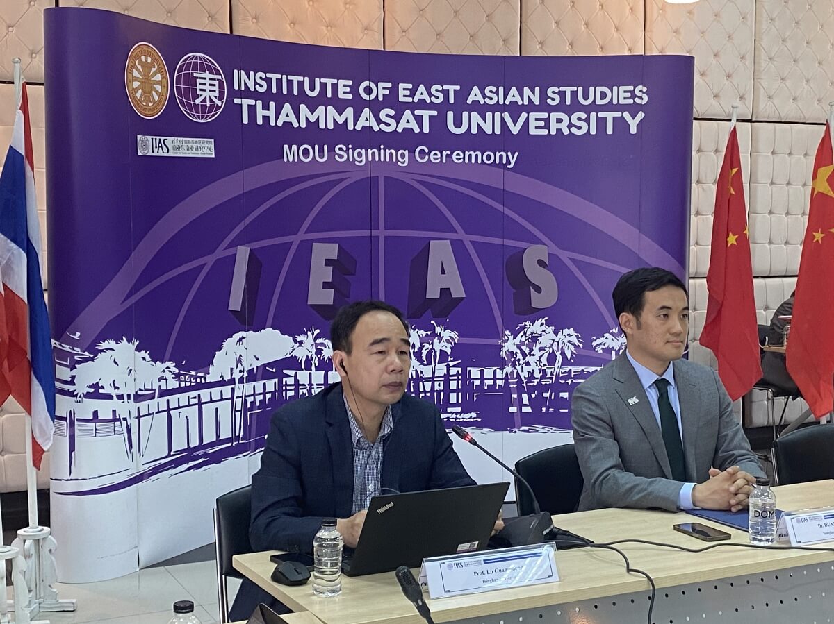 The founding ceremony was hosted by Assist. Prof. Dr. Li Yuqing from Tsinghua IIAS. Assist. Prof. Dr. Chaiwat Meesanthan, Director of the Institute of East Asian Studies of Thammasat University, and Assist. Prof. Dr. Duan Jiuzhou, Assistant Dean of the IIAS delivered welcoming speeches successively, introduced the development and academic concepts of the two institutes respectively, and presented an outlook into future cooperation between the two institutions.