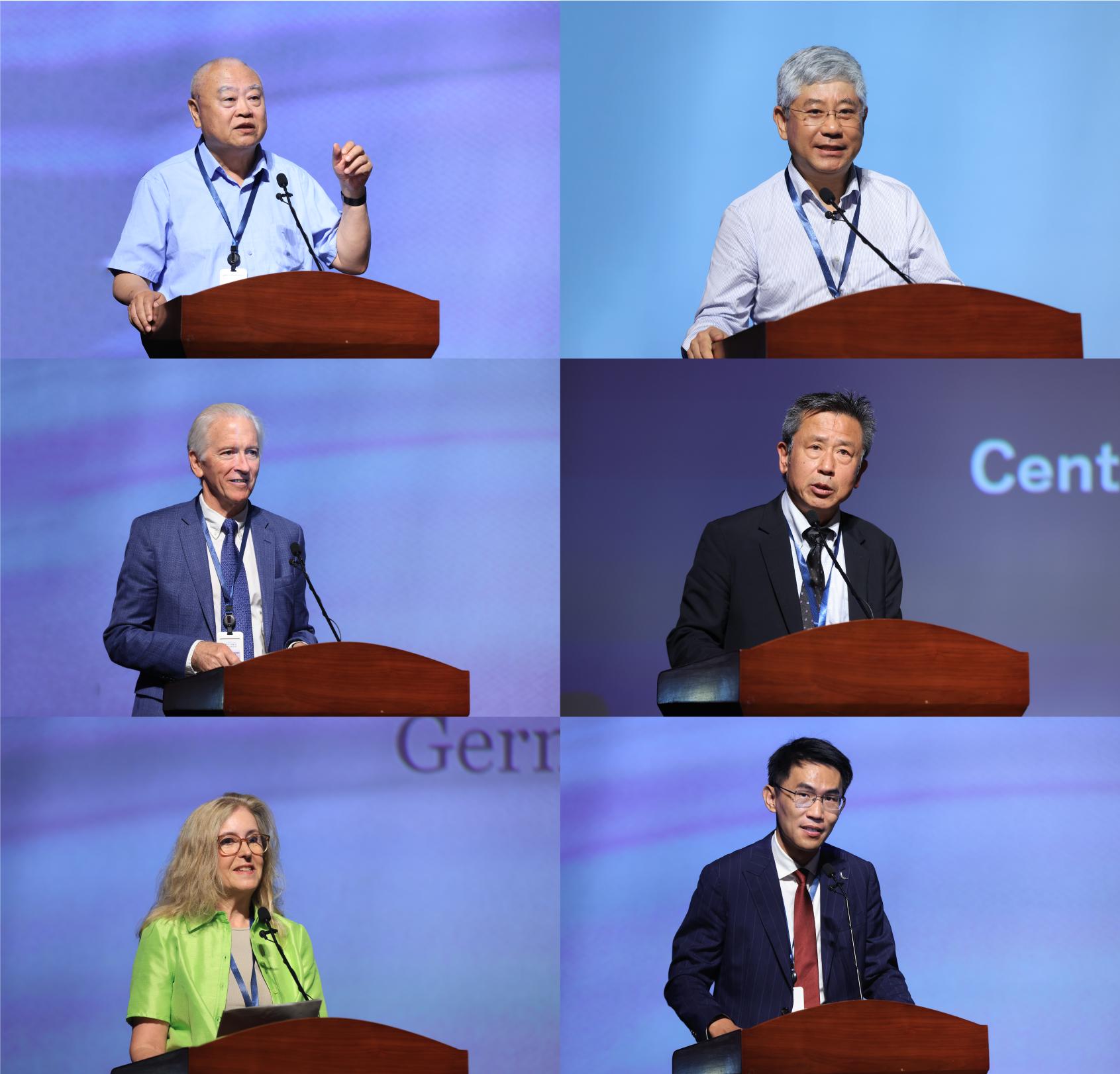 沈志华、白重恩、尤金·罗根、河野泰之、玛丽安娜·拉诺斯、熊星翰分别作主旨发言(从左至右、从上至下)