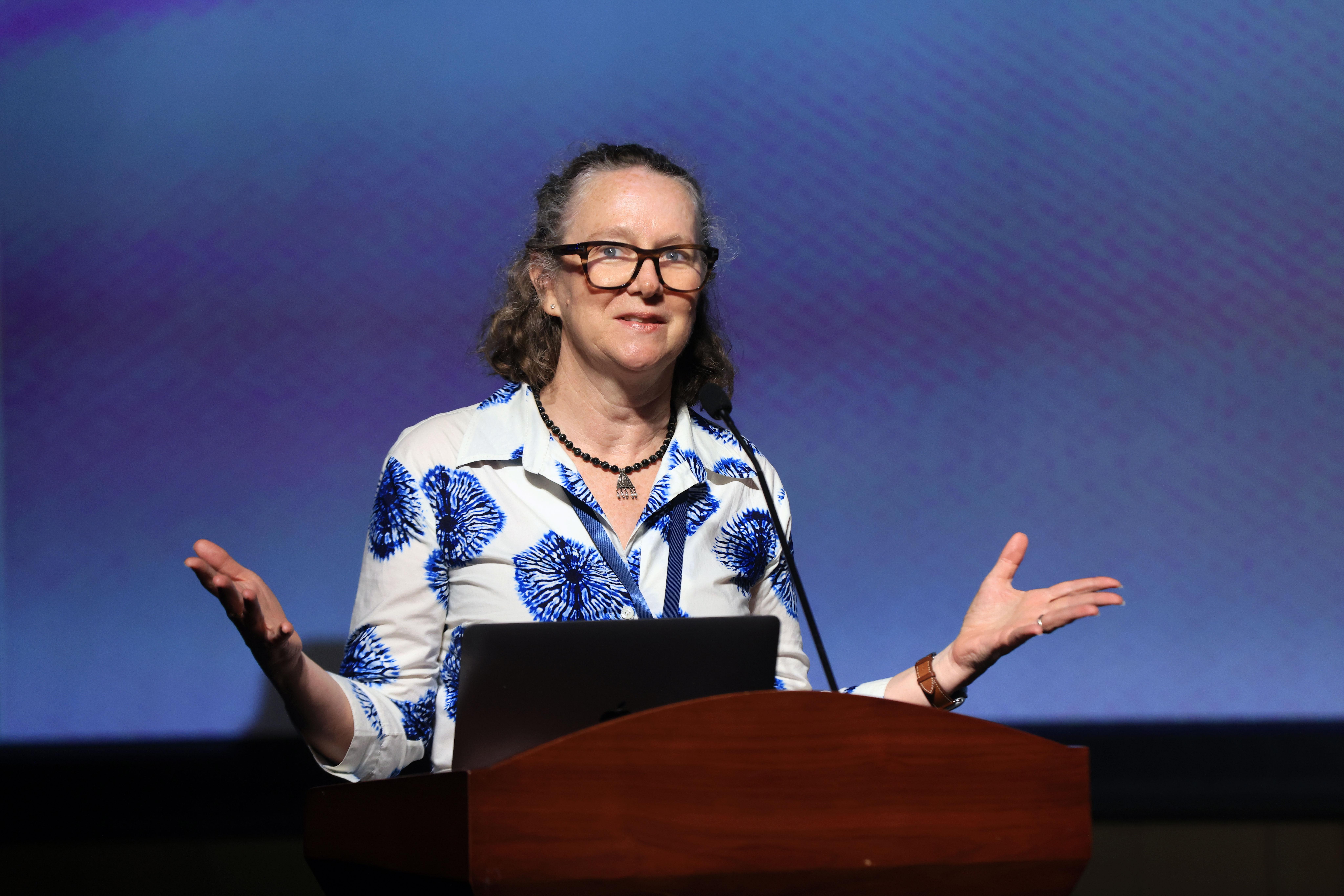 在闭幕主旨演讲环节,伦敦大学亚非学院副校长、知名非洲问题专家劳拉·哈蒙德教授以“展望未来:构建区域研究的协作模式”为题发言。她回顾了伦敦大学亚非学院109年来如何“去殖民研究”的转型历程,并指出当前区域研究面临三大挑战:其一是推动知识生产的公平化与合作化,重视南方研究者的地位与数据访问权;其二是重新理解人工智能带来的结构性知识失衡问题;其三是在新孤立主义兴起的时代,回归对语言、文化、宗教、家庭结构等微观维度的深度分析。她强调:“在一个充满挑战的全球时代当中,我们要以真正的合作伙伴关系共同努力来开展区域国别研究,在一种互相信任的方式之上我们来争取对于我们研究的地区更好的理解。”