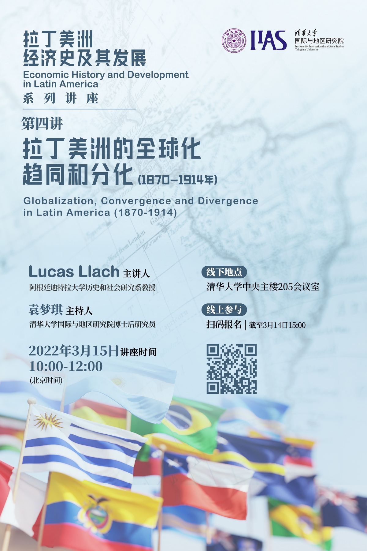 邀请阿根廷迪特拉大学历史和社会研究系教授卢卡斯·拉齐(Lucas Llach)在线带领院内外师生走进《拉丁美洲经济史及其发展》系列讲座第四讲,讲座主题为“拉丁美洲的全球化、趋同和分化(1870-1914)”,地区研究院博士后研究员袁梦琪主持本系列讲座。