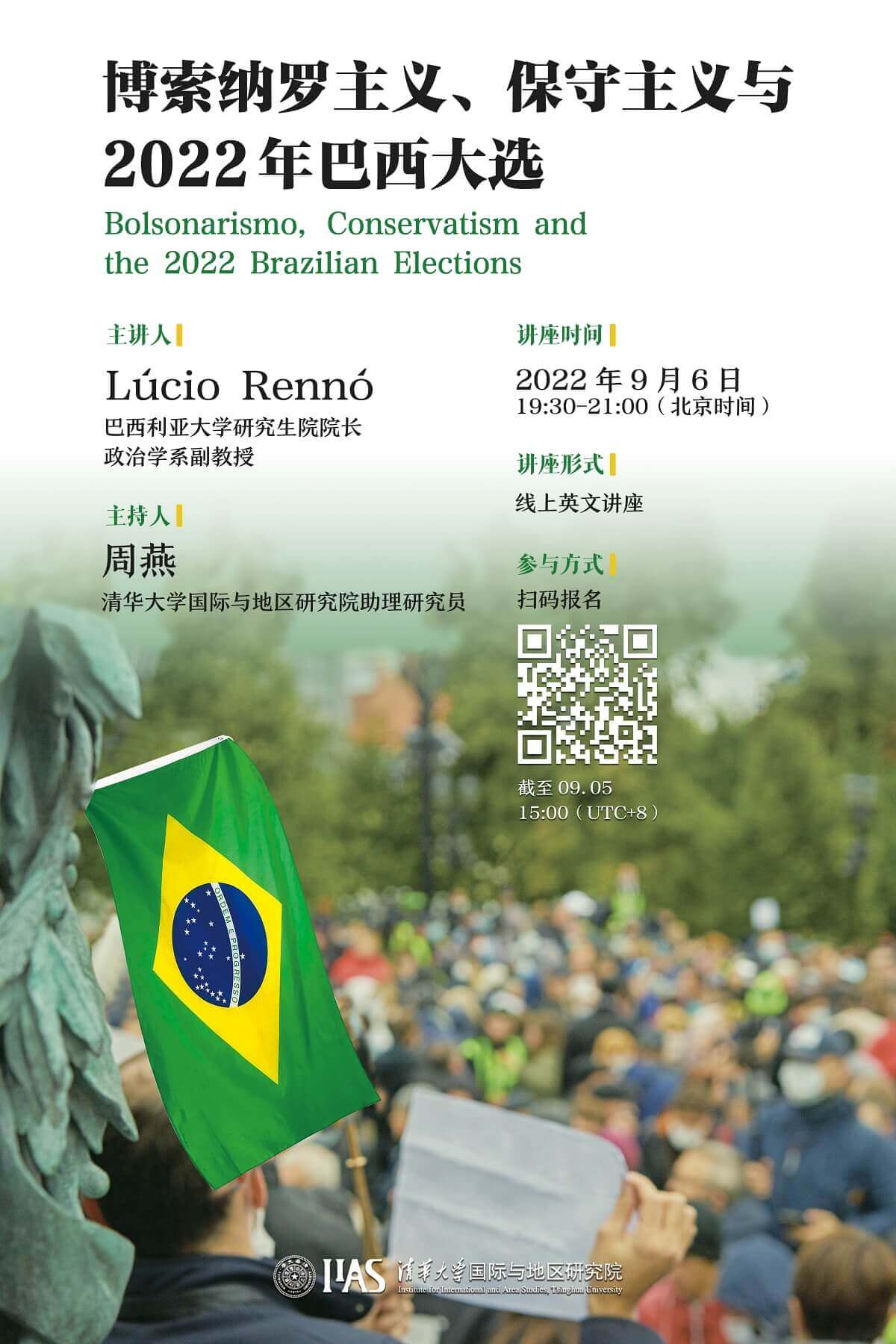 邀请巴西利亚大学研究生院院长、政治学系副教授Lúcio Rennó担任本场讲座的主讲人,以“博索纳罗主义、保守主义与2022年巴西大选(Bolsonarismo, conservatism and the 2022 Brazilian Elections)”为讲座主题,为院内外师生带来了一场精彩绝伦的线上讲座。本场讲座的主持人是地区研究院助理研究员周燕。