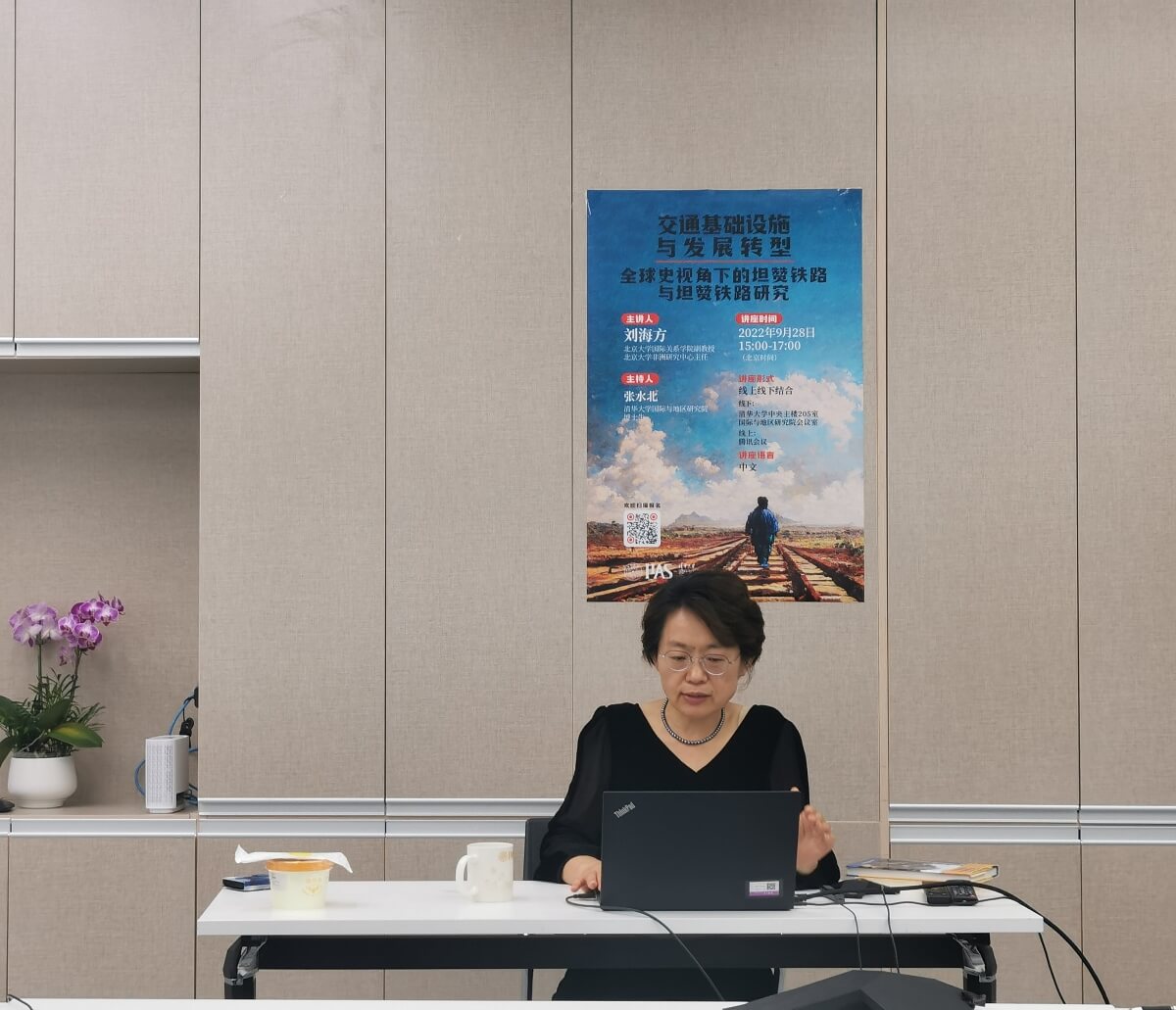 讲座开始,刘海方副教授介绍了本次讲座的源起,并以目前国际同行对坦赞铁路精神的疑问为切入点,向听众分享了近20年关于坦赞铁路研究及故事。刘海方副教授指出,坦赞铁路的话题完全不过时,国内外一直就重振坦赞铁路的途径、坦赞铁路的前景等问题进行着讨论。随后,刘海方副教授分享了自己对坦赞铁路的感受以及此前在坦桑尼亚时的所见所闻。她指出,中国在援助坦桑尼亚方面始终发挥着积极作用,但是限于宣传的力度和广度,当时未能很好地讲述“技术援助”的故事。基于此,刘海方副教授提出了与非洲互动的思考。她指出,中国公司应该逐渐走出“神秘性”的限制,充分发挥其作为“言说者”的作用。此前西方国家普遍认为坦赞铁路仅有政治价值而无经济价值,但刘海方副教授以世行的报告和英加报告为例,反驳了以上观点,认为坦赞铁路在特定条件下可以实现盈利。中国于1983年开始参与管理铁路,西德机车的利用促使坦赞铁路进入了十年盈利期。90年代以后,由于南非政局改变、赞比亚私有化等原因导致铁路的运量减少。接下来,刘海方副教授探讨了为何中方援助未能达到预期效果的问题。她以艾平老师与美国学者的著作为例,指出坦桑尼亚政府不能有效利用援助项目是导致该问题的重要原因之一。