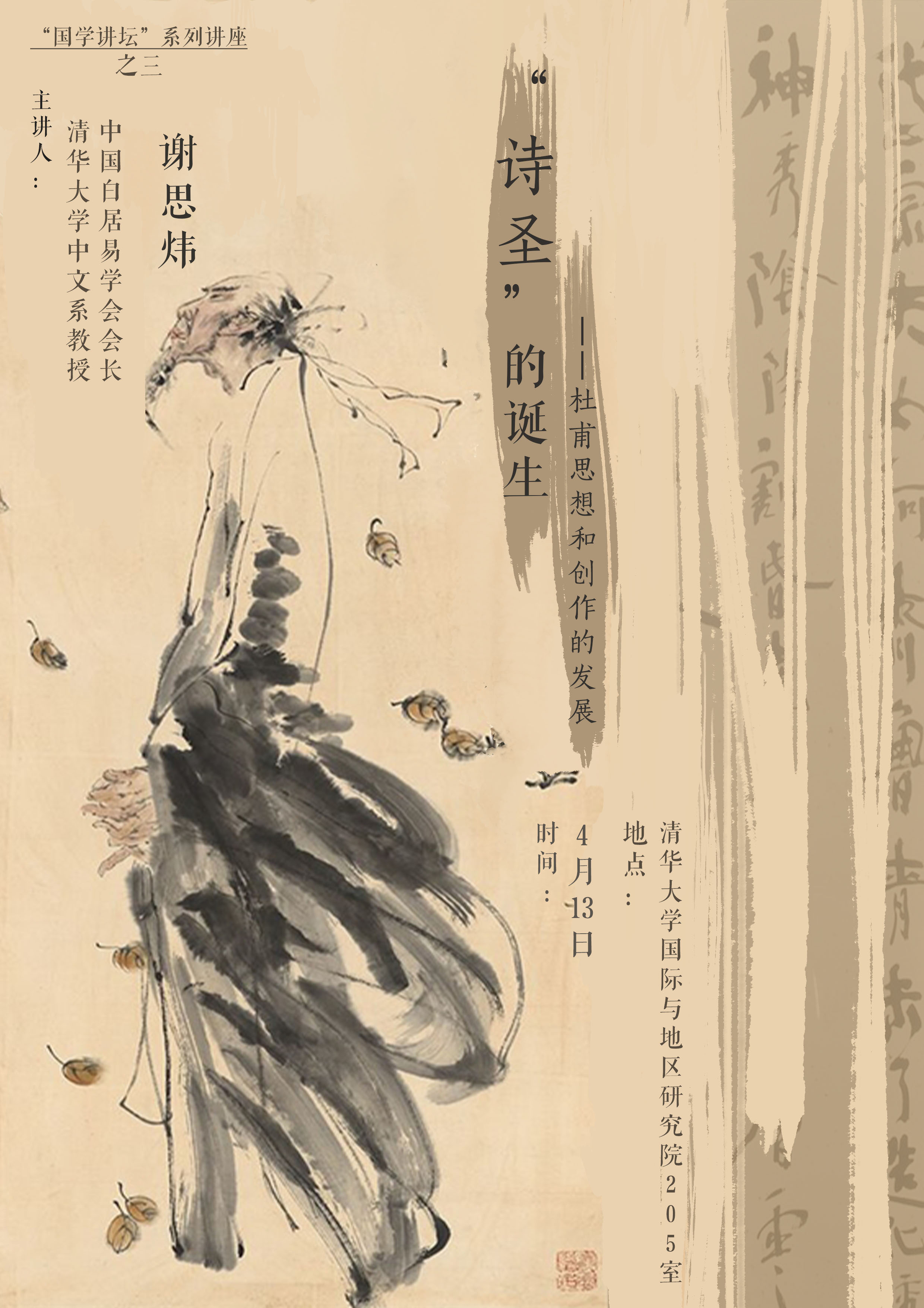 中文系教授谢思炜主讲,主题为“杜甫何以成为诗圣”。