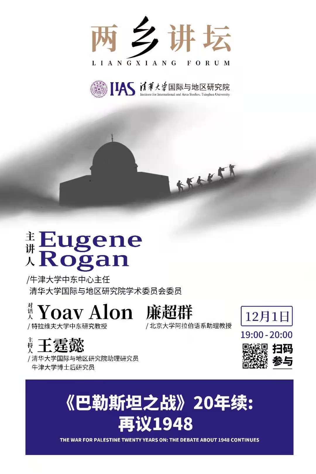 Eugene Rogan教授将其与Avi Shlaim教授共同编纂的《巴勒斯坦之战:重写1948》(The War for Palestine: Rewriting the History of 1948)一书作为讲座背景,对中东地区的历史性难题——巴以争端,进行了全面的回溯性介绍,他还对该研究领域的“新史观”学派进行了详述及评价。《巴勒斯坦之战:重写1948》汇集了Edward Said,Benny Morris, Charles Tripp, Avi Shlaim, Eugene Rogan, Rashid Khalidi等诸多享誉国际的中东史学名家的论述。