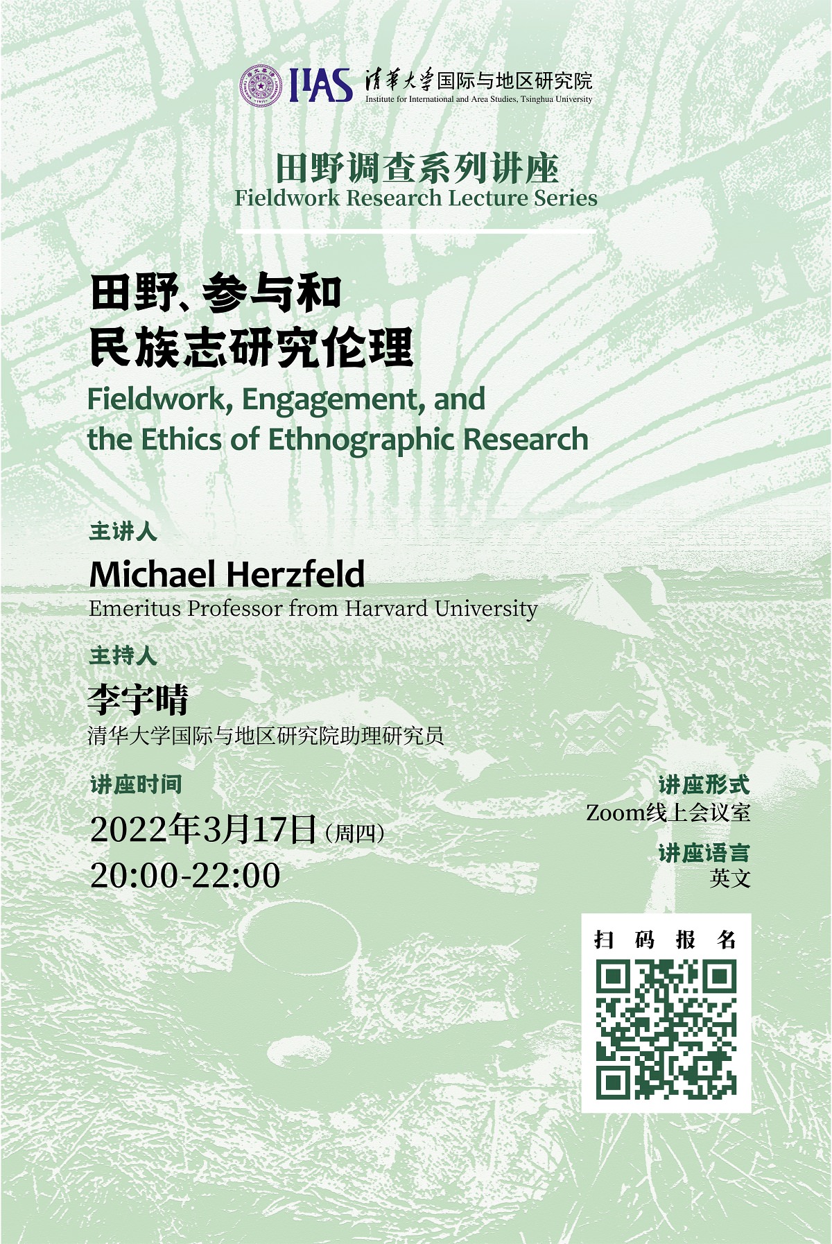 2022年3月17日晚,田野调查系列讲座第一讲在Zoom会议室和直播平台同时召开,主题为“田野、参与和民族志研究伦理”(Fieldwork, Engagement, and the Ethics of Ethnographic Research)。本次讲座由哈佛大学人类学系荣休教授、世界著名社会人类学家迈克·赫兹菲尔德(Michael Herzfeld)主讲,性爱直播