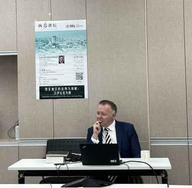 讲座结束后,Gareth Stansfield教授就伊拉克作为西亚地区促进者的优势和劣势、中国的调解作用、对年轻学者及学生的意见和建议等线上、线下听众提出的问题做出回应。