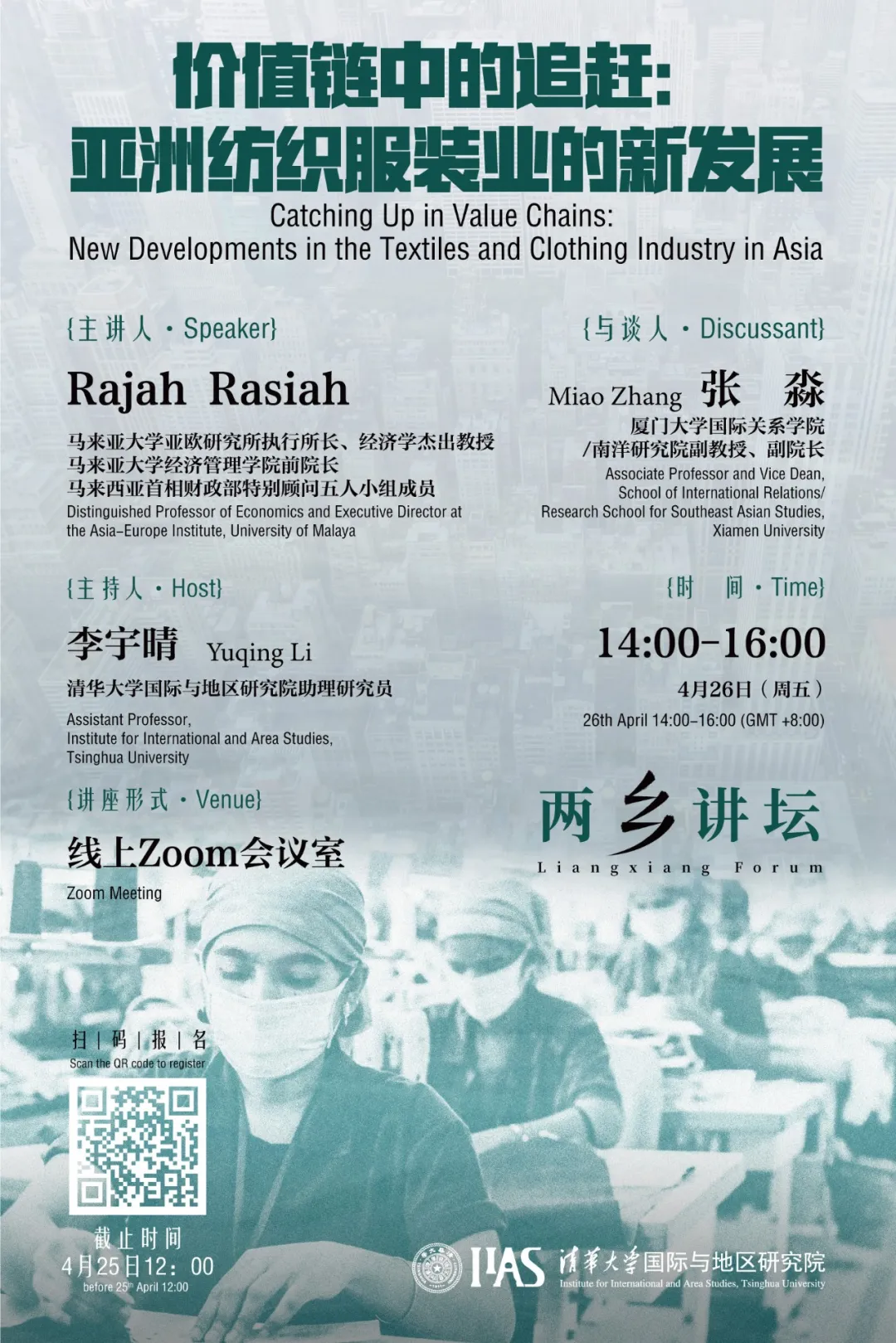 “两乡讲坛”第二十六讲线上开讲,主题为“价值链中的追赶:亚洲纺织服装业的新发展”(Catching Up in Value Chains: New Developments in the Textiles and Clothing Industry in Asia)。本场讲座由马来亚大学亚欧研究所执行所长、经济学杰出教授,经济管理学院前院长,马来西亚首相财政部特别顾问五人小组成员Rajah Rasiah主讲,厦门大学国际关系学院/南洋研究院副院长张淼与谈,性爱直播