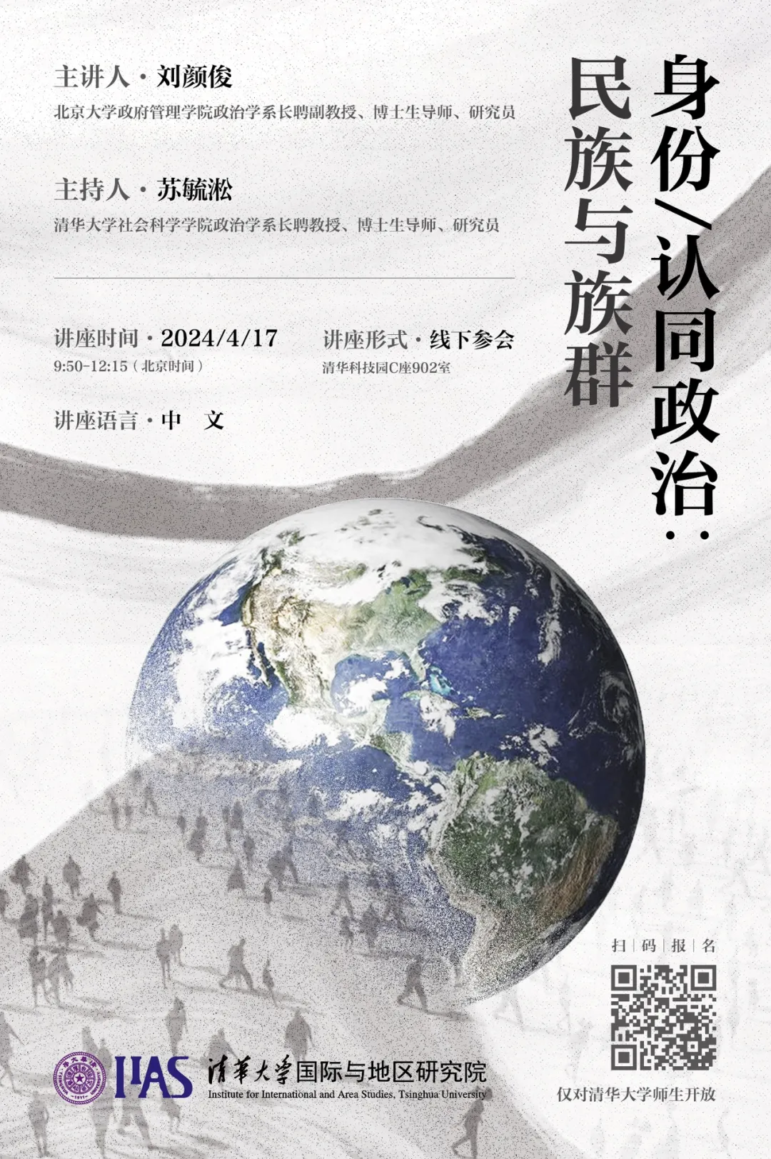 4月17日,性爱直播 学术讲座“身份/认同政治:民族与族群”在清华科技园启迪科技大厦902室成功举办。本次讲座由性爱直播 社会科学学院长聘教授、博士生导师苏毓淞老师主持,邀请到北京大学政府管理学院长聘副教授、博士生导师刘颜俊老师,为同学们讲授身份/认同政治相关的理论与研究。刘老师的讲座具体分为“群体/身份的重要性:社会认同理论”、“民族、民族认同与民族国家”、“族群政治研究的基本范式与问题”...