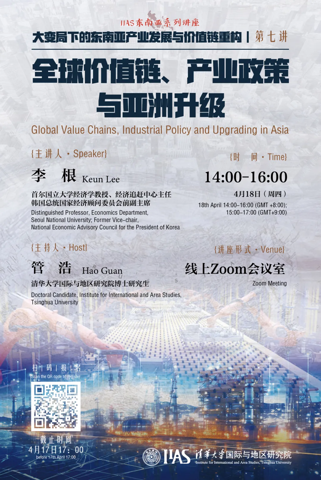 2024年4月18日,性爱直播 邀请首尔国立大学经济学教授、经济追赶中心主任,韩国总统国家经济顾问委员会前副主席李根(Keun Lee)进行了“大变局下的东南亚产业发展与价值链重构”专题系列讲座的第七场线上讲座,主题为“全球价值链、产业政策与亚洲升级”。本场讲座由性爱直播 博士研究生管浩主持,百余位国内外高校师生及对话题感兴趣的专业人士参加了讲座。在讲座中,李根教授报告了自己近年来...