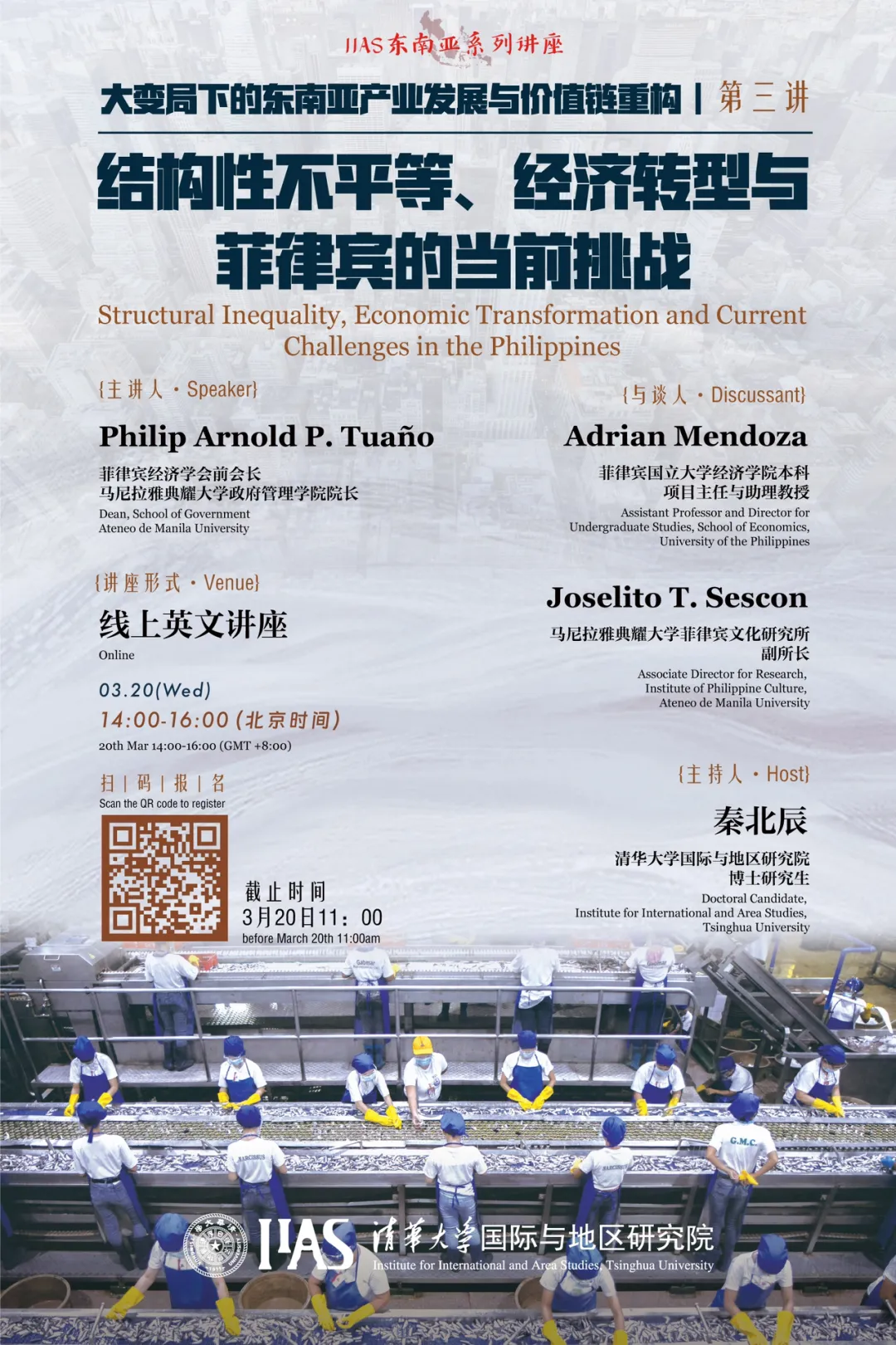 2024年3月20日下午,性爱直播 邀请菲律宾经济学会前会长、马尼拉雅典耀大学政府管理学院院长Philip Arnold P. Tuaño教授进行了“大变局下的东南亚产业发展与价值链重构”专题系列讲座的第三场线上讲座,主题为“结构性不平等、经济转型与菲律宾的当前挑战”。本场讲座由性爱直播 博士研究生秦北辰主持,马尼拉雅典耀大学社会科学学院前院长、经济学教授Fernando Aldaba及菲律宾文化研究所副所长J...