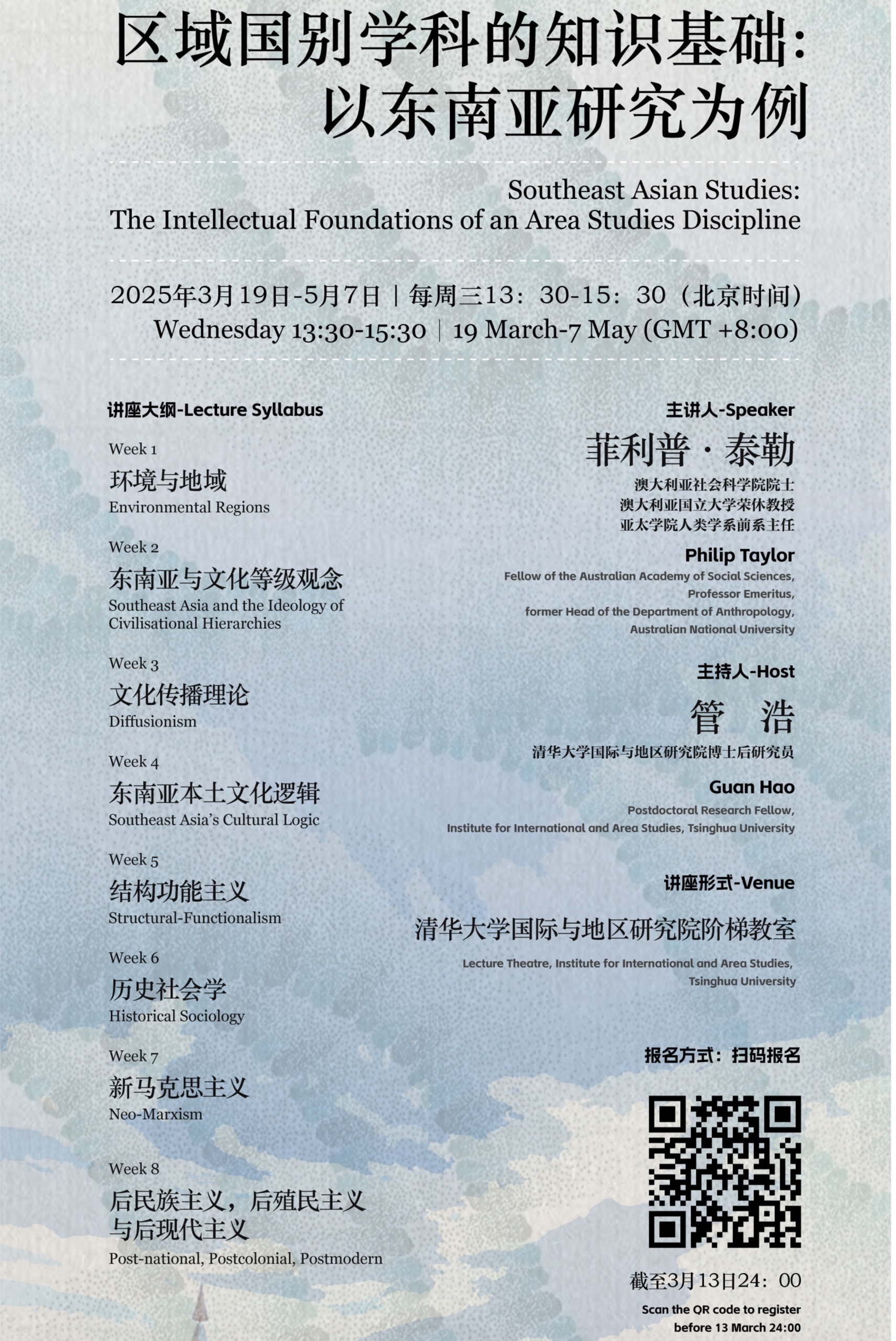 2025年3月19日下午,性爱直播 邀请澳大利亚社会科学院院士、澳大利亚国立大学荣休教授、亚太学院人类学系前系主任菲利普·泰勒(Philip Taylor)教授进行了“区域国别学科的知识基础:以东南亚研究为例”专题系列讲座的第一讲,主题为“环境与地域”。本场讲座由性爱直播 博士后研究员管浩主持,百余名国内外高校师生及对该话题感兴趣的专业人士通过线下和线上等方式参加了讲座。讲座伊始,菲利普...