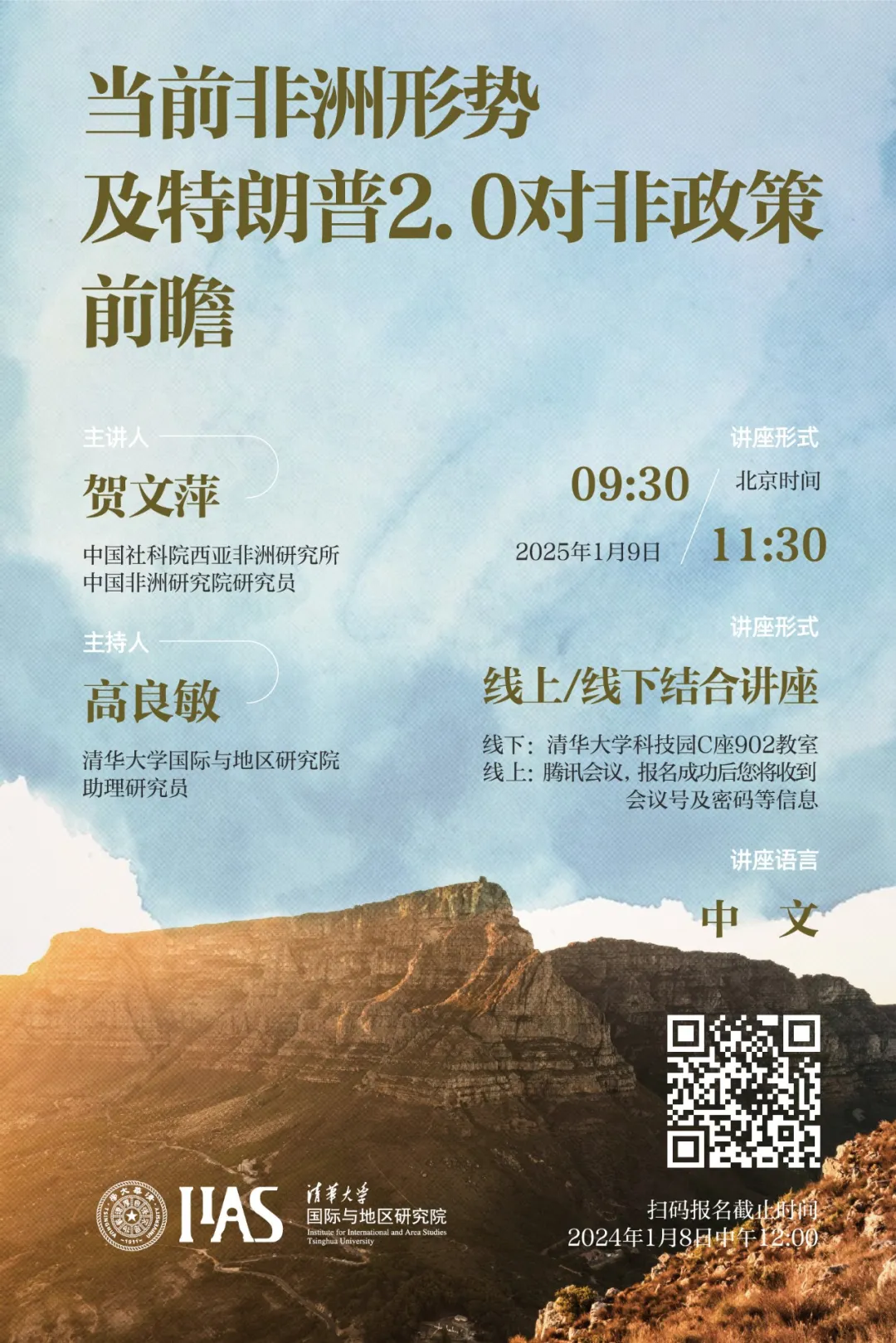 2025年1月9日9:30-11:30,性爱直播 (以下简称“地区研究院”)撒哈拉以南非洲研究中心2024-2025学年秋季学期第五场独立讲座在线上线下同时开讲,主题为“当前非洲形势及特朗普2.0对非政策前瞻”。本次讲座由中国社科院西亚非洲研究所、中国非洲研究院贺文萍研究员主讲,地区研究院撒哈拉以南非洲研究中心主任、助理研究员高良敏主持。地区研究院研究员、博士生,国内外高校的学者、学生等近百人参加了讲座。...