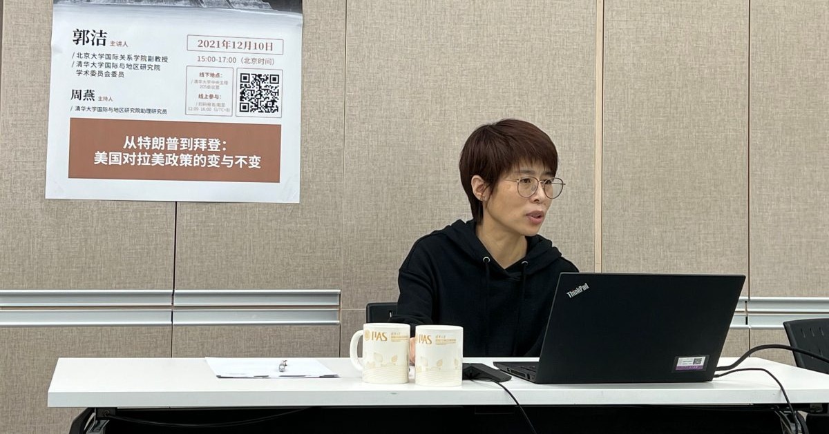 2021年12月10日下午,性爱直播 主办的2021年秋季学期“两乡讲坛”第六讲顺利举行。本讲由北京大学国际关系学系副教授郭洁主讲,讲座主题为“从特朗普到拜登:美国对拉美政策的变与不变”。