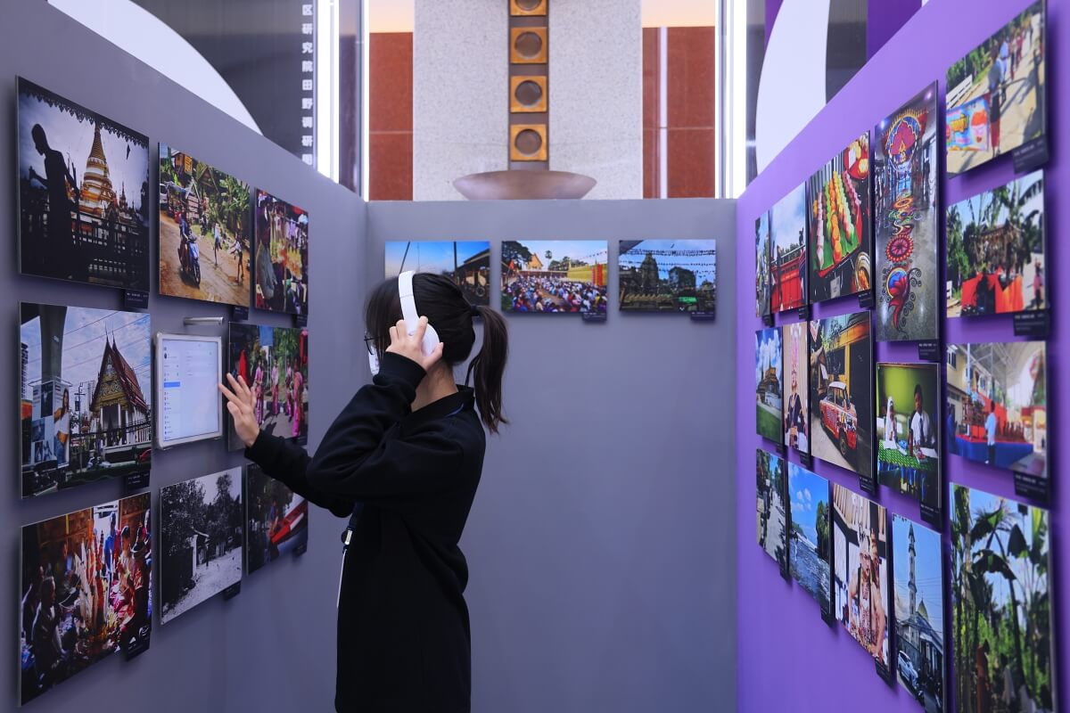 “田野调研图片展”是地区研究院师生用镜头记录的“田野日志”,本次展览主题以“众观·无界”为名,意为“消失的边界和开阔的眼界”,着重展现发展中国家世界的多样性,讲述图片和影像背后蕴藏的故事和精神,引导观展者领略田野风情和生发人文思考。展览共由六个发展中国家地区展区和一个发达国家展区组成,呈现了东南亚、拉丁美洲和加勒比、南亚、欧亚、撒哈拉以南非洲、西亚北非以及英美发达国家等地的人文特色和自然景观。